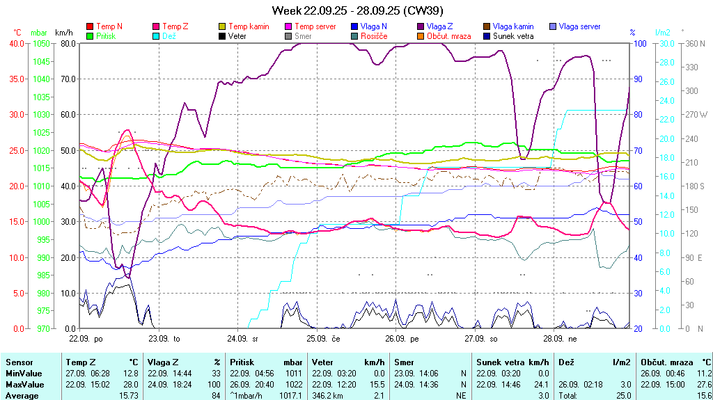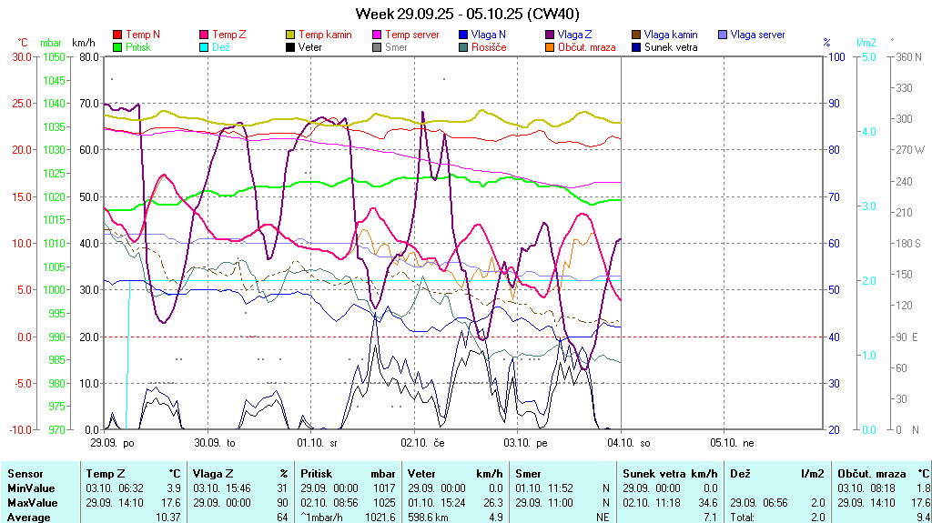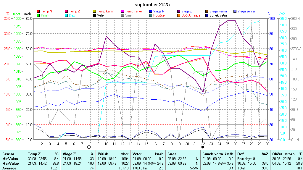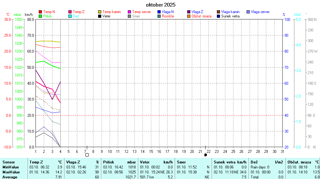Podatke merim z vremensko postajo Oregon scientific WMR 928 NX