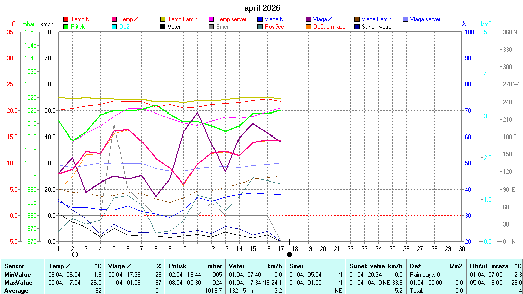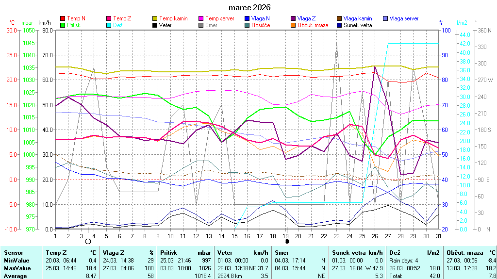 | Maksimalni sunek vetra | 78,1 km/h dne 04.05.2018 ob 13:52 |