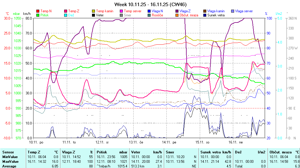 | Maksimalni veter | 47,9 km/h dne 03.08.2009 ob 23:22 |